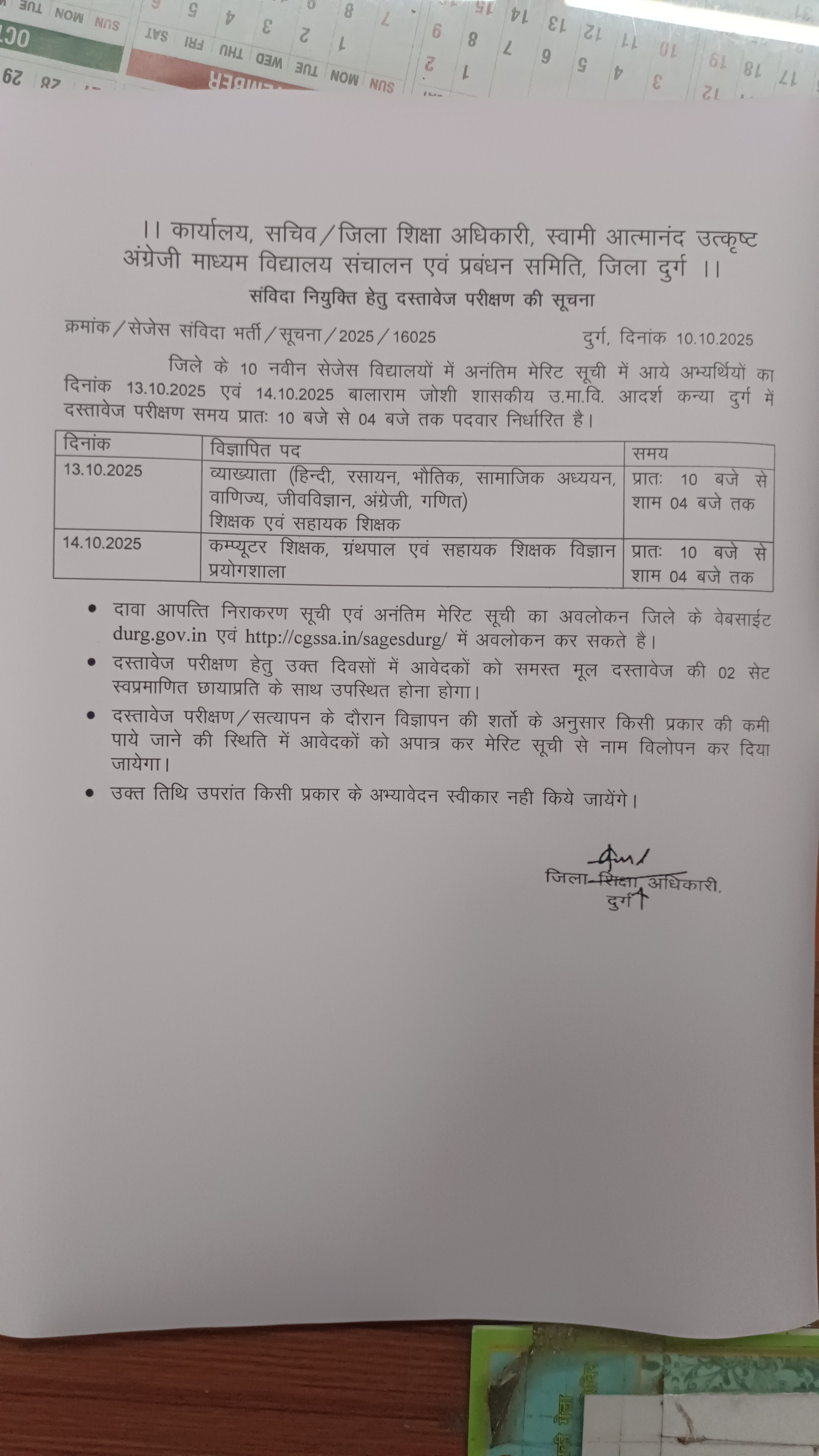 संविदा भर्ती दावा आपत्ति सूचना